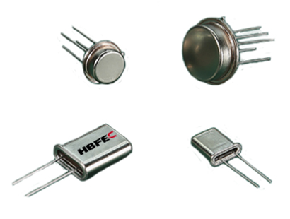 晶体谐振器是利用石英晶体的压电效应来产生高精度振荡频率的一种电子元件。具有稳定,抗干扰性能良好的特点,广泛应用于各种电子产品中。根据引线状况可分为直插(有引线)与表面贴装(无引线)两种类型。我司主要封装型号有TO-8、TO-5、43U、45U、UM-1、UM-5等。